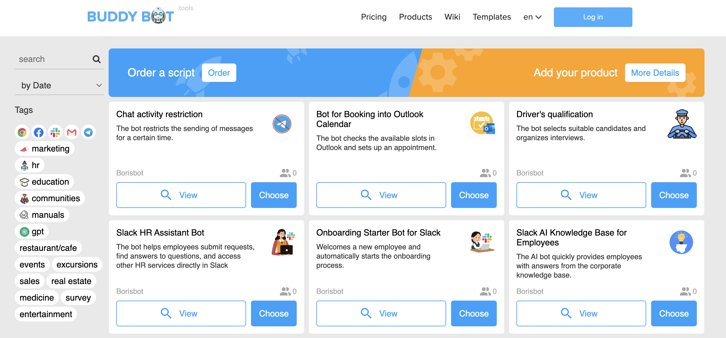 If you represent a company, you can order a demonstration of the designer's capabilities. We will show how BorisBot solves corporate tasks and provide usage examples.